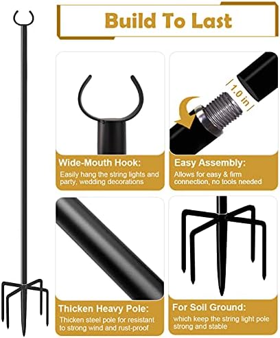 [ Wide Range of Uses ] – The poles for backyard LED string lights are perfect for whatever occasion, which are designed for hanging outdoor commercial grade lights, bunting, fairy light, mason jars, lanterns, wind bells, Christmas decorations, Halloween decorations and more. Our metal light stands can not only decorate your backyard, lawn, garden, balcony, bistro, patio and more. but also perfect for weddings, gardens, parties and other holiday decorations.