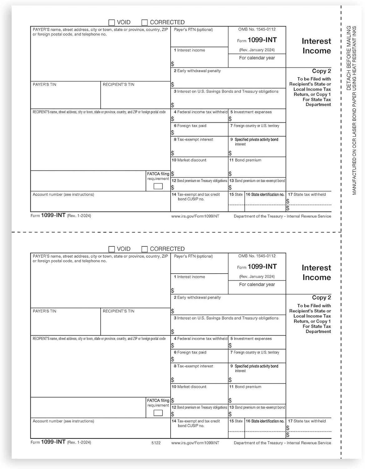 Our 1099-INT forms (2024) are created with thick 20 lb USA made paper that will quickly feed through your laser or inkjet printer without you worrying about jamming
