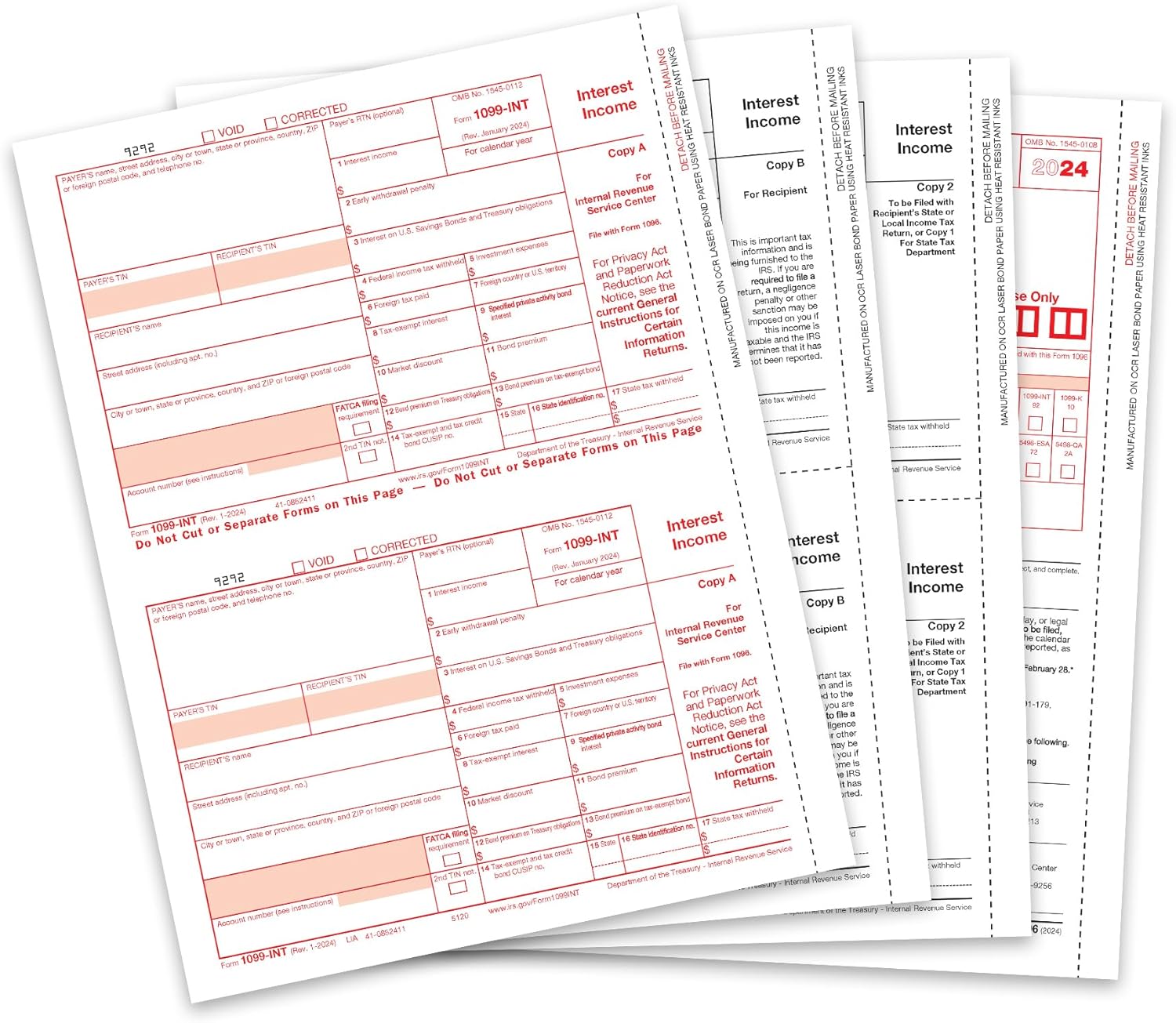 2024 1099 INT 4 Part Interest Tax Forms, 25 Laser Form Sets for Interest Income, Compatible with QuickBooks and Accounting Software, 25 Pack