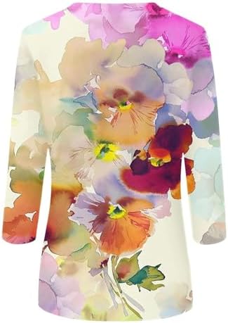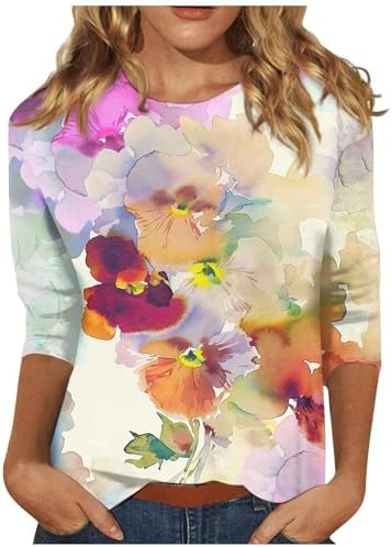 2024 Floral Printed Tops for Women Trendy 3/4 Sleeve Shirts Loose Fit Casual Dressy Blouses Soft Color Block Tees