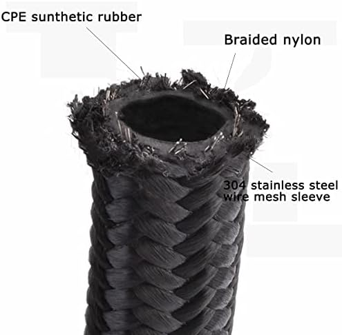 3/8 6AN 20FT, Nylon Stainless Steel Braided Fuel Line Oil/Gas/Fuel Hose End Fitting Hose with 10PCS Swivel Fitting Adapter Kit – Black