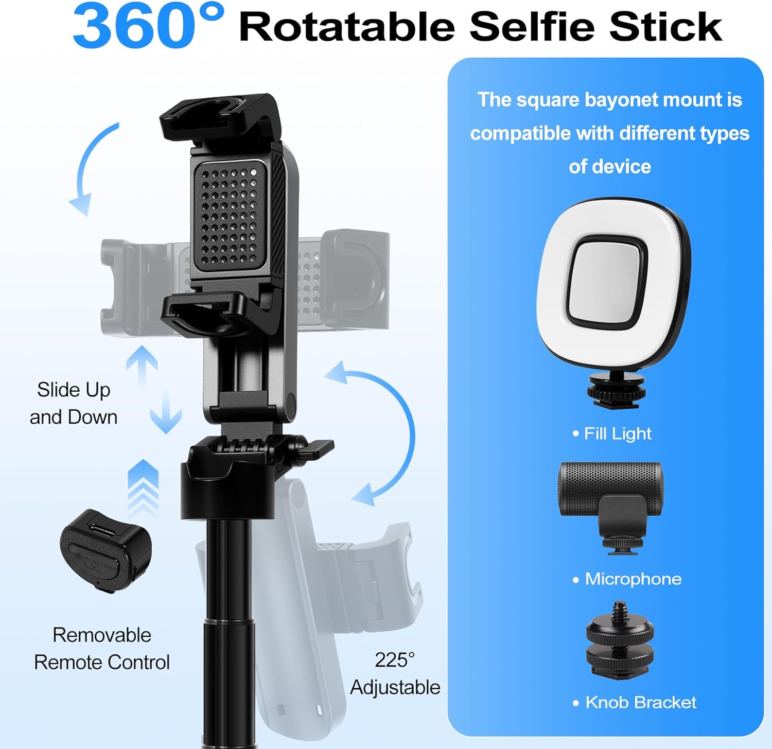 360° Rotation Adjustment: Selfie stick tripod supports switching between horizontal and vertical screens, and 360° free rotation, allowing you to easily find the most suitable angle for your phone. You can easily take both horizontal and vertical photos.