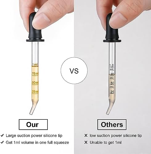 Food Grade Material – Silicone tips are medical grade. The droppers are made from thick borosilicate glass which are highly transparent and dishwasher safe.