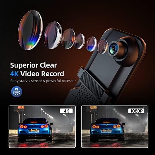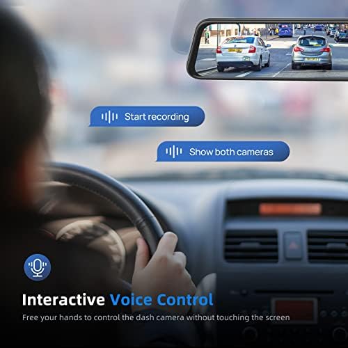 [Hands-free Interactive Voice Control]: Now Veement 4K wifi mirror dash cam allows you to use your voice to control the camera while dirving: Turn on(off) screen/ Lock the video/Show both cameras, ect. Access to basic functions using simple voice commands, which can keep your hands on the wheel, offering you a safer, more comfortable driving experience.