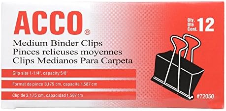 ACCO Binder Clips, Medium, Black, 12 per Box, 2 Boxes (72062)