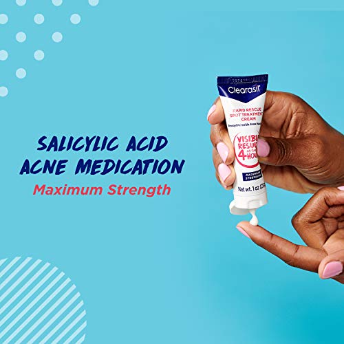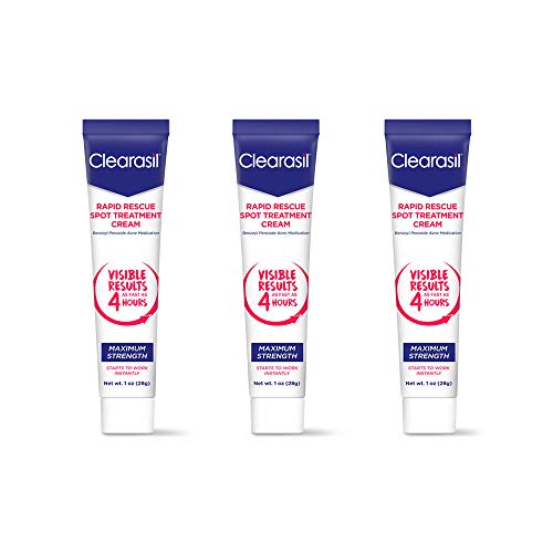Acne Treatment Cream – Clearasil Rapid Rescue Spot Treatment Cream with Benzoyl Peroxide Acne Medication for Acne Relief in as fast as 4 hours, 1 Ounce (Pack of 3)