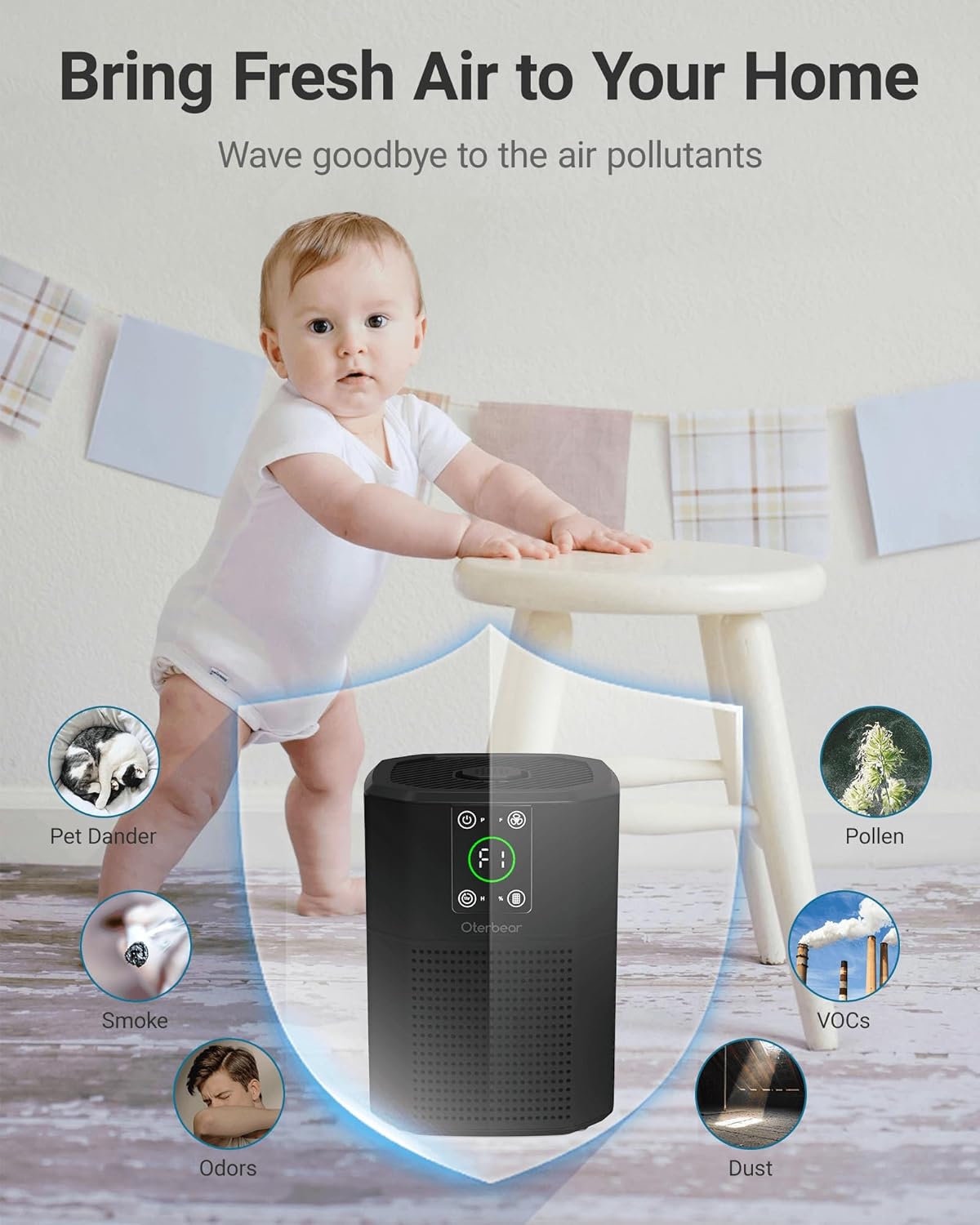 Compact & Portable: This Oterbear air purifier is compact in size, saves storage space, easy to carry and can be taken anywhere you go. The portable air purifier is widely used in many small space occasions, such as bedroom, dorm, nurseries, office, pet room, hotel, RV and so on. With its minimalistic appearance, the small air purifier can also be given as a gift to your family or friends during holidays, such as Thanksgiving, Christmas, Valentine’s Day, Mother’s Day and Father’s Day.