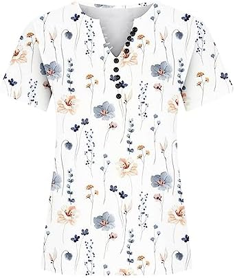 amidoa Women’s Summer Shirts Tops Floral Print Notch Vneck Tshirt Ladies Going Out Outfits Beach Vacation Blouses Outfits