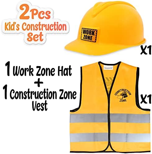 AnapoliZ Kids Construction Vest plus Hat Set | 2 Pcs Kids Construction Worker Vest & Hat Dress Up | Yellow Reflective Vest Construction, plus Yellow Plastic Childrens Hard Hat | Construction Costume