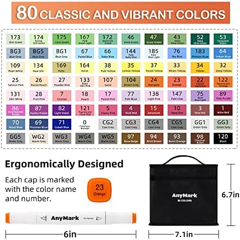 AnyMark Alcohol Markers, 80 Colors Alcohol Markers Set, Dual Tips Alcohol-Based Art Markers for Kids Adult Artists Drawing Coloring Sketch, Chisel & Fine Tips