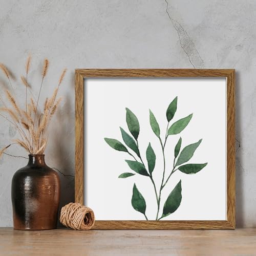 ArtbyHannah Framed Bathroom Wall Art Set of 4 for Botanical Wall Decor Green Plant Picture Frame Collage Set for Home Living Room Decoration (Walnut, 10×10)