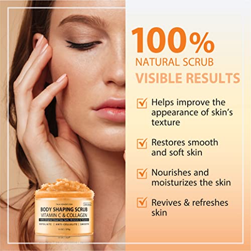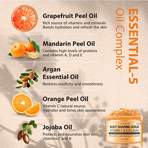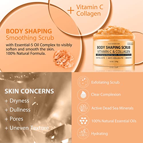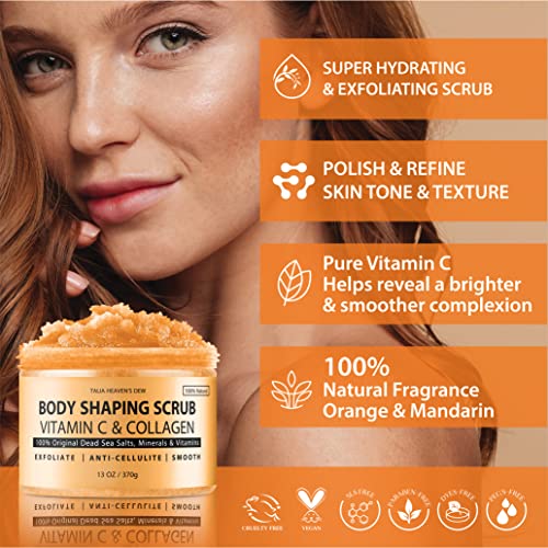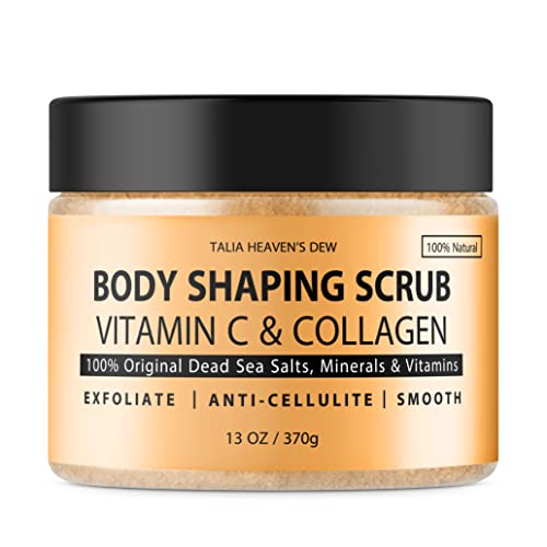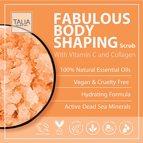 Body Shaping Scrub by Talia Heaven’s Dew – Vegan Body Scrub with Vitamin C & Collagen for Even Appearance. Clean and Moisturize Skin. 100% Clean & Vegan Skin Care. 13 oz.