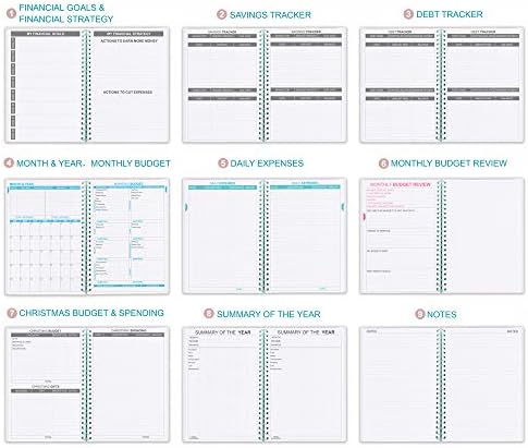 This undated money planner is 5.82×8.25 inch, inludes 12 months of financial planning with structured pages for setting financial goals, financial strategy, savings, debts, daily expense, monthly budget, monthly budget review, Christmas budget, summary of the year sections, which is a good finance books, it will help you to take control of your money effectively.