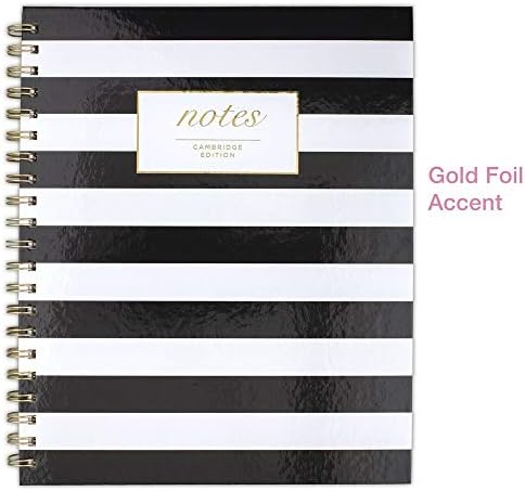 Cambridge business notebook is durable for daily use; hardcover with a fashionable black and white stripe design. Ruled notebook pages keep handwriting neatly aligned. Notebook is undated for anytime use. Sheets include a date box in top right corner to keep notes organized. Each page is perforated for clean and easy removal. Notebook is wire bound with gold twin wire binding to add style and ensure lasting use. Black and white stripe look is bold and classy. Front cover features the word notes stamped in gold along with the Cambridge brand Name. Quality white paper with black Ruling meets all your note taking needs. Cambridge fashion hardcover business notebook has 11 x 8-7/8 pages. Includes 80 double-sided sheets; 160 ruled pages.