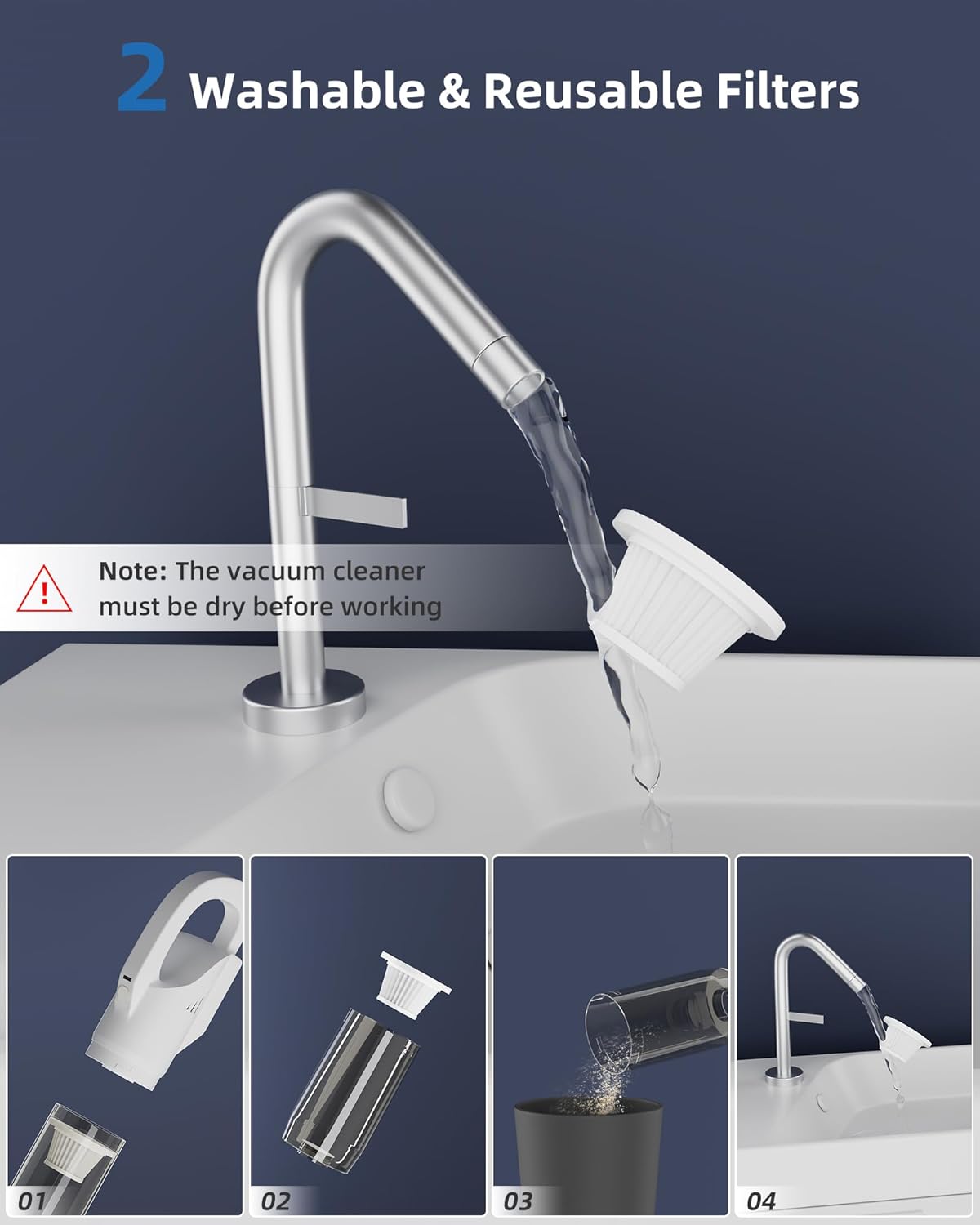 【easy to use】this portable vacuum cordless is easy to use and requires no setup, one button start after charging with type-c, and you can start vacuuming.if you are looking for an easy to use, easy to clean, portable vacuum, this one could be the one for you. Also, the 2 filters reduce the frequency of filter changes. This makes the vacuum cleaner easier to use and maintain