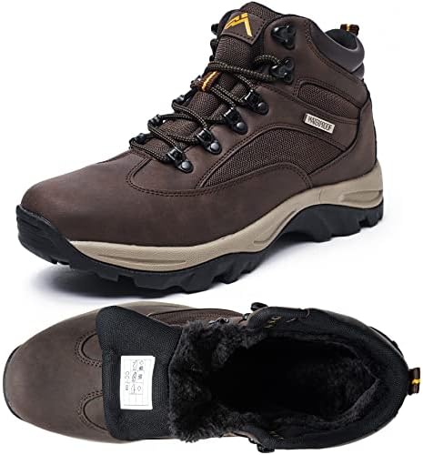 CC-Los Men’s Snow Boots Winter Hiking Boot Waterproof Leather Cold-Weather Mid-Top Non-slip Warm Fur
