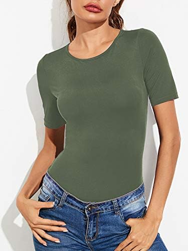 Century Star Short Sleeve Bodysuit for Women Round Collar Body Suit Tops for Women Basic T Shirts Jumpsuit Sexy Leotards