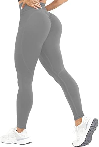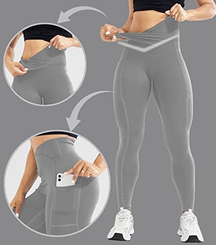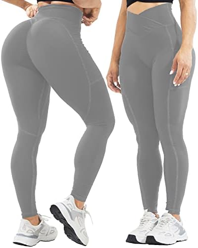 CFR Women’s High Waisted V Cross Over Leggings with Pockets Sexy Gym Booty Scrunch Yoga Pants Butt Lifting Workout Clothes