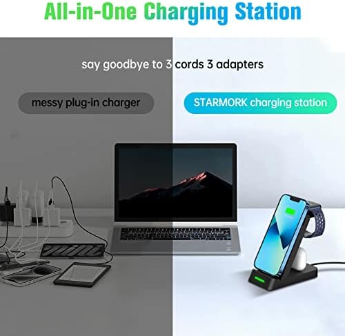 【Better Compatibility】Our Charging Station for Apple Multiple Devices has greater compatibility than general Charging Station. 3-in-1 Charging Station provides stable and fast charging for iPhone,Apple Watch and AriPods.It is compatible with iPhone 14/14 Pro/14 Pro Max/13/13 Pro/13 Pro Max/13 mini/12/12 Pro/12 Pro Max/12 mini/11/11 Pro/11 Pro Max/XS/XR/8/8Plus/7/7s/6/6s /5/5s & Apple iWatch 8/7/6/5/4/3/2/1/SE and all AriPods (Note: only for Apple products).