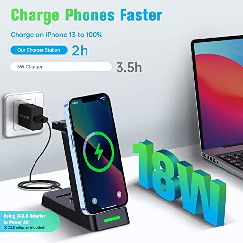 【Safety & Fast Charging】Equipped with FCC certified 18W adapter and Type-c cable, it only takes 2 to 3 hours to fully charge your smart device. Our Charger Docking Stand adopts intelligent protection technology, which provides temperature control, overvoltage protection, short circuit protection, overcurrent protection to ensure safe and fast charging.