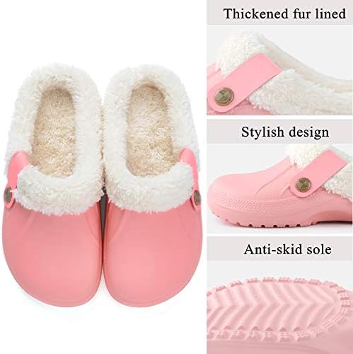 ChayChax Waterproof Slippers Women Men Fur Lined Clogs Winter Garden Shoes Warm House Slippers Indoor Outdoor Mules