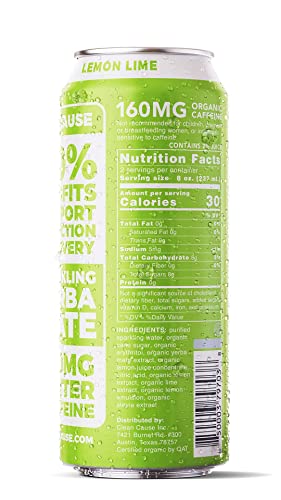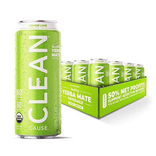 CLEAN Cause Low Calorie Lemon Lime USDA Organic Sparkling Yerba Mate Tea (16oz cans, 12-Pack Case) Low Sugar, 160mg Caffeine, Healthy Alternative to Soda & Energy Drinks.