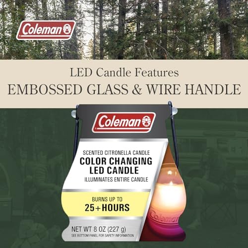 Extended Burn Time: The 8oz Coleman Color Changing LED Citronella Candle offers up to 25 hours of continuous burn time, ensuring a prolonged and enchanting outdoor ambiance, whether used in the backyard or taken along on your outdoor adventures.