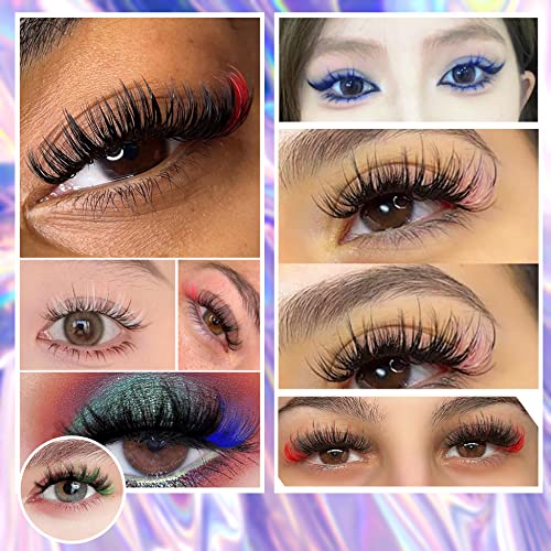 Colored Individual Lashes Cluster Lashes DIY Red Pink White Green Blue Eyelashes 3D False Eyelashes Extension Natural Colored Mixed Lashes at Home by Winifred