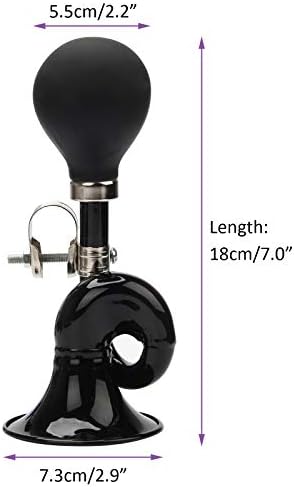 HORN SIZE: Length-18cm(7.0″); Horn ball diameter – 5.5cm(2.2″); Metal mouth – 7.3cm(2.9″). Mounting dimensions: Handlebar diameter – 2.22 cm(0.87″).