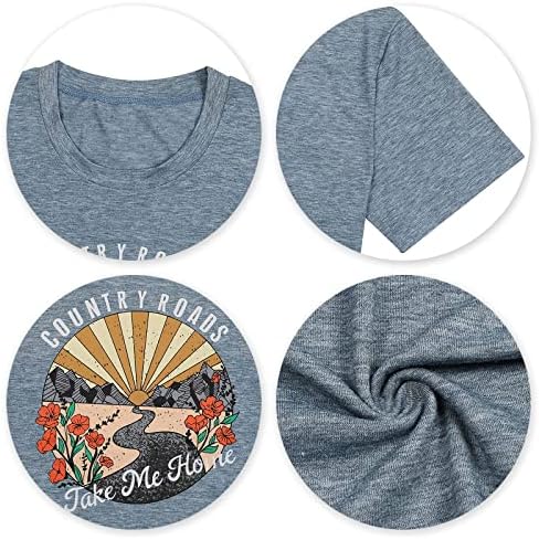 Country Roads Take Me Home T Shirt Womens Country Music Shirts Casual Short Sleeve Tees Top