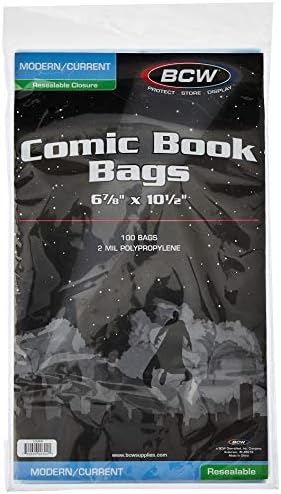 BCW Reseal able Current Comic Bags are an acid-free, archival quality product made of ultra-clear polypropylene. These bags feature an adhesive strip on the body of the bag so the collector can fold the flap over and seal in the comic book. Use this bag like a pro to protect and store your regular modern comic books.