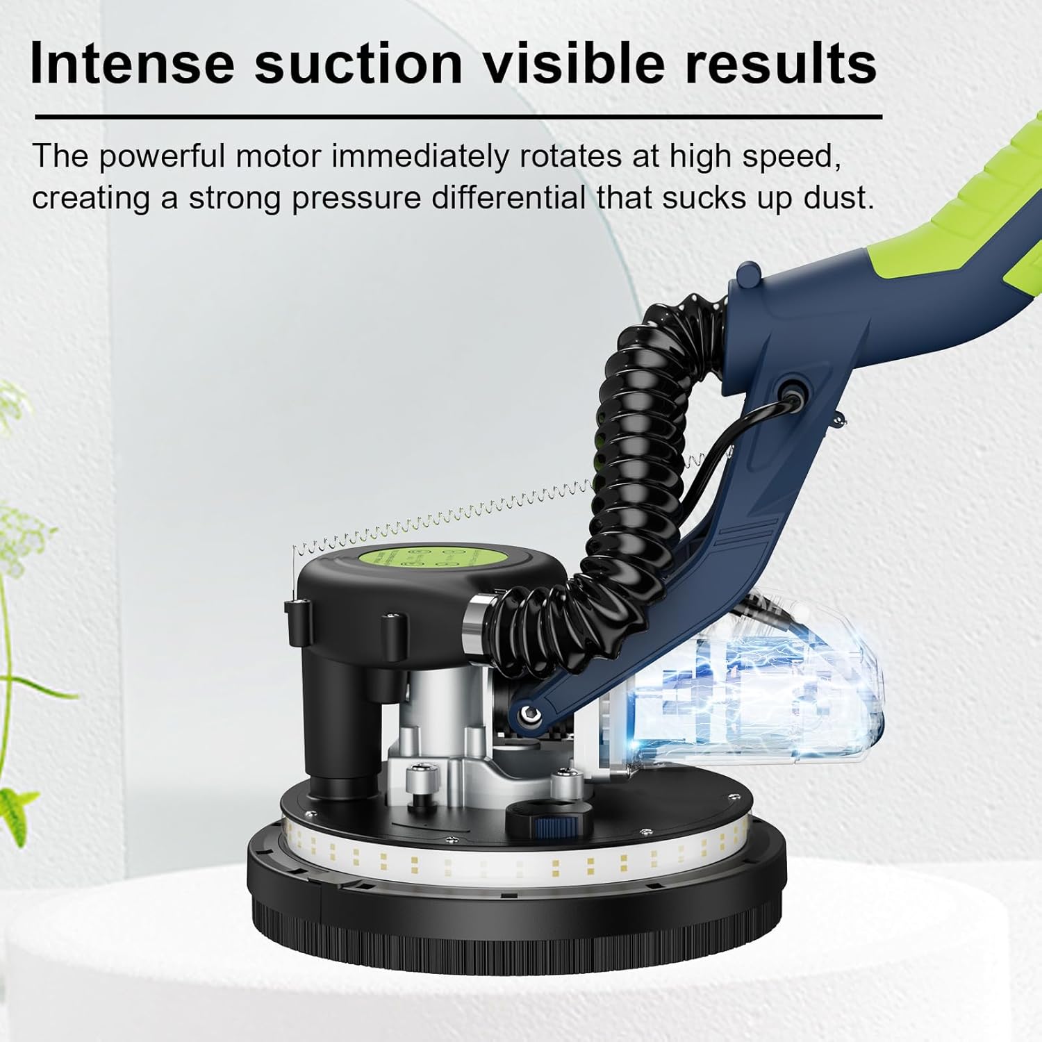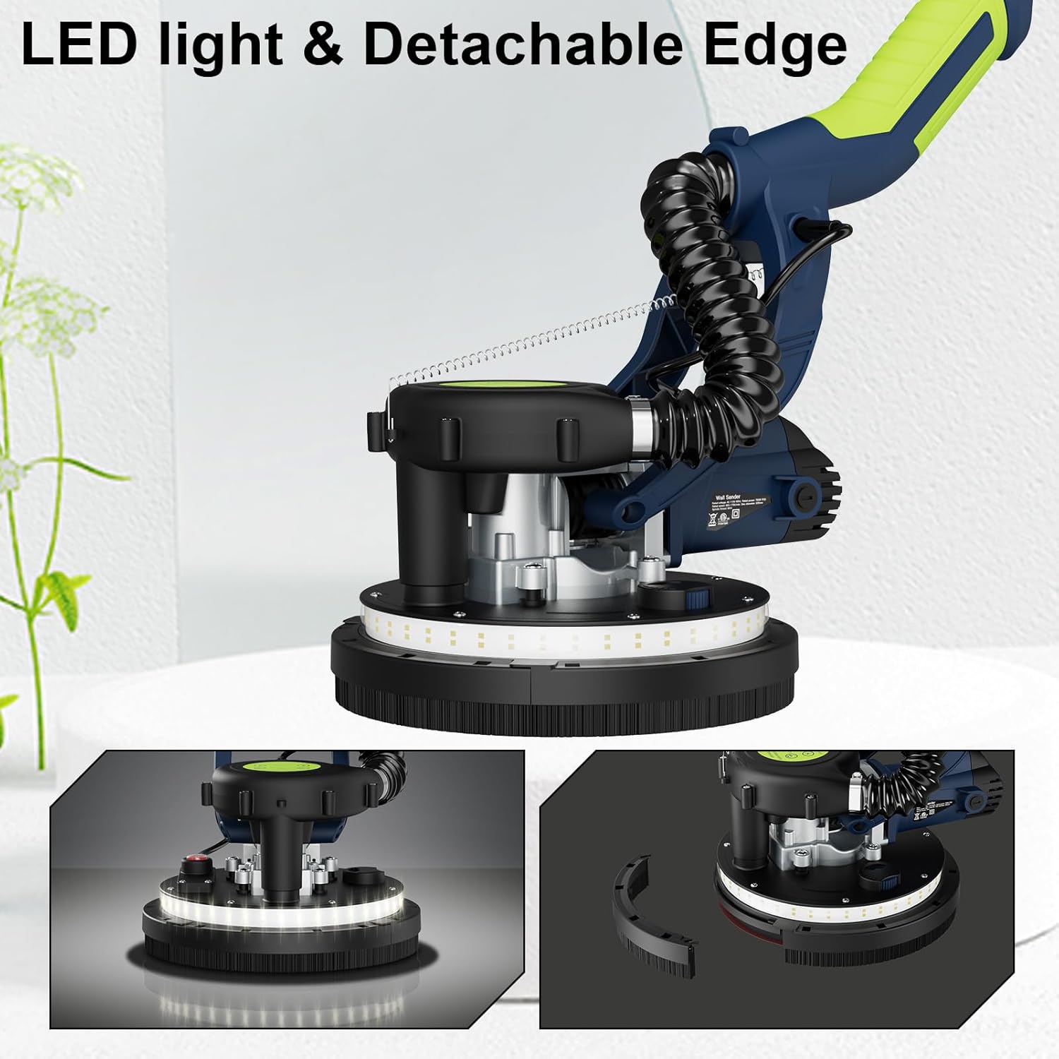 LED light strip and detachable corners: The LED light attached to the head of the machine is soft, even and non-glaring, allowing you to see the work area more clearly during operation and sand normally in dark corners. This provides better visibility for detailed sanding. The removable corner design makes it easier to work on edges and corners when sanding walls. The corners can be easily removed, making it easier to work in corners or other tight areas and increasing operating flexibility. You can choose to use or remove the corners according to different job requirements, making the sander more adaptable.