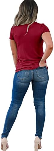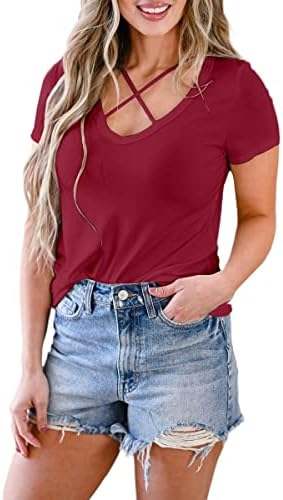 Dyexces Criss Cross Tops for Women Short Sleeve Sexy V Neck T-Shirts Tunic Solid Color Casual Tee Shirts