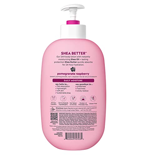eos Shea Better Body Lotion- Pomegranate Raspberry, 24-Hour Moisture Skin Care, Lightweight & Non-Greasy, Made with Natural Shea, Vegan, 16 fl oz