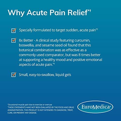 EuroMedica Triple Action Acute Pain Relief – 60 Softgels – with Clinically Studied Curcumin & Boswellia – Non-GMO – 30 Servings