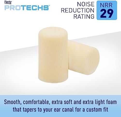Flents Foam Ear Plugs, 50 Pair for Sleeping, Snoring, Loud Noise, Traveling, Concerts, Construction, & Studying, Contour to Ears, NRR 29, Beige