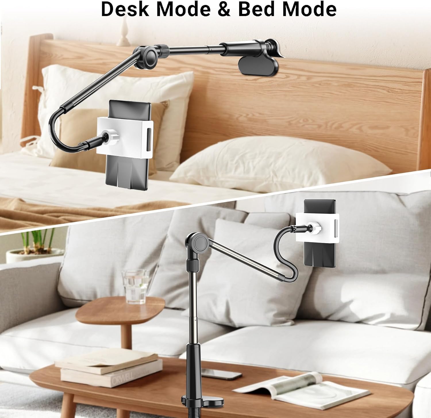 【Longer Arm&Sturdy】Holder is made of aluminum alloy, more sturdy and durable, just unscrew the nut, Max stretchable height/length of 15.9in/40.5cm, can be clamped on the bedside, table , office, desk and kitchen. Although it is longer, the thickened arm is also Sturdy