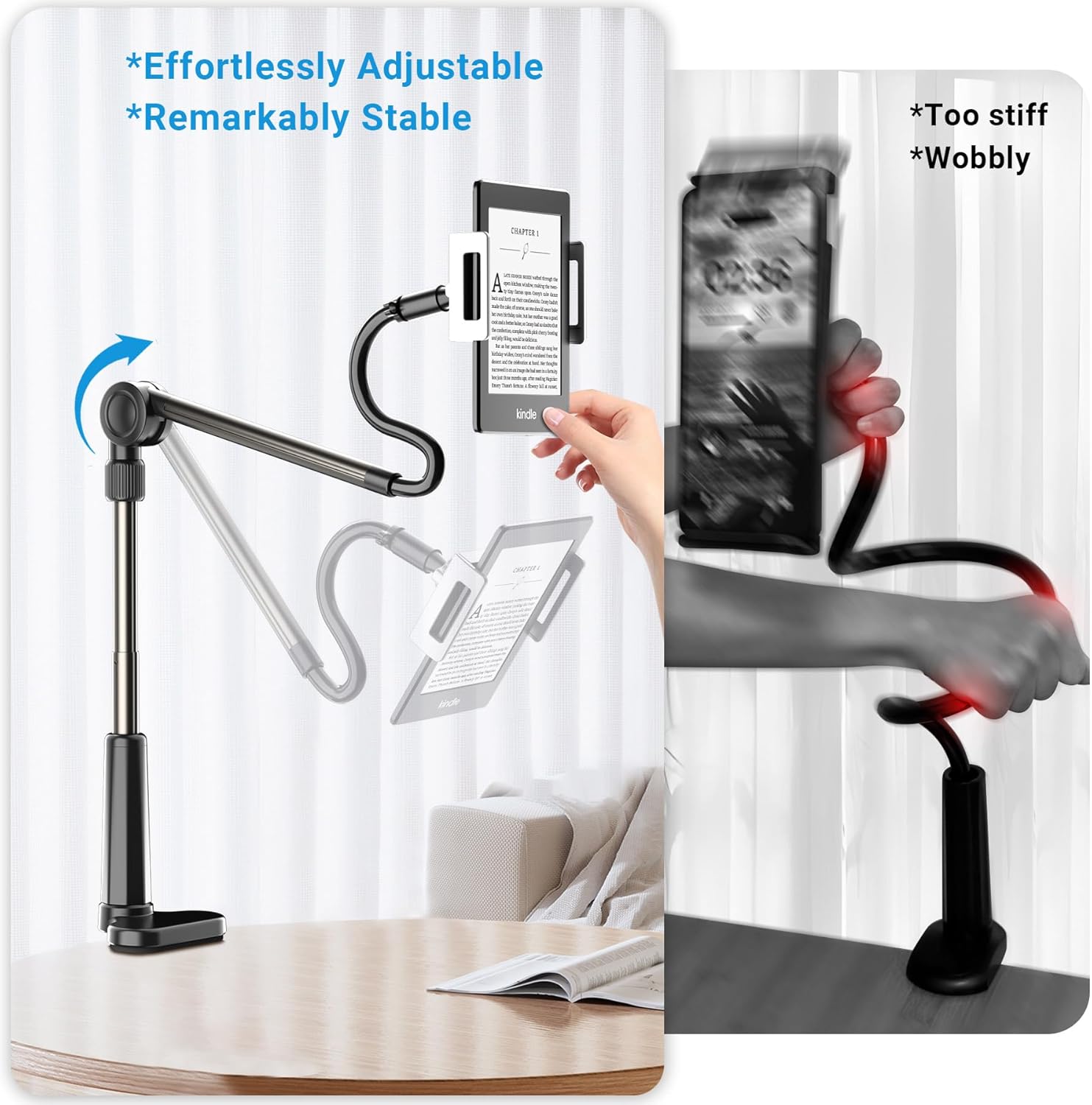 Foldable Tablet Holder for Kindle Reading in Bed, No Stiff Easy Adjust Flexible Tablet Arm Desk Holder, Ereader Accessories for Kindle Paperwhite/Scribe/Oasis, iPad, Phone