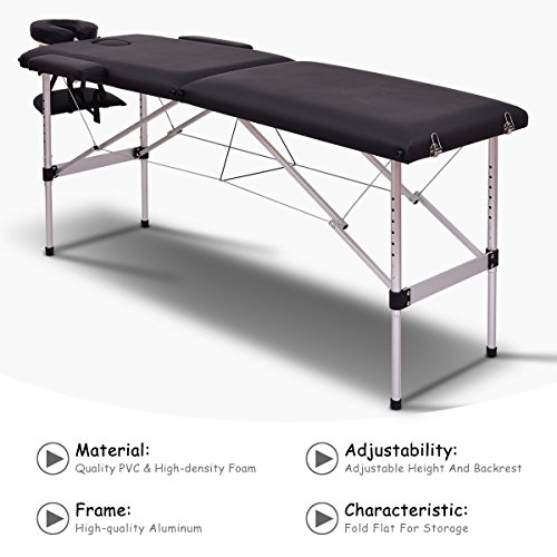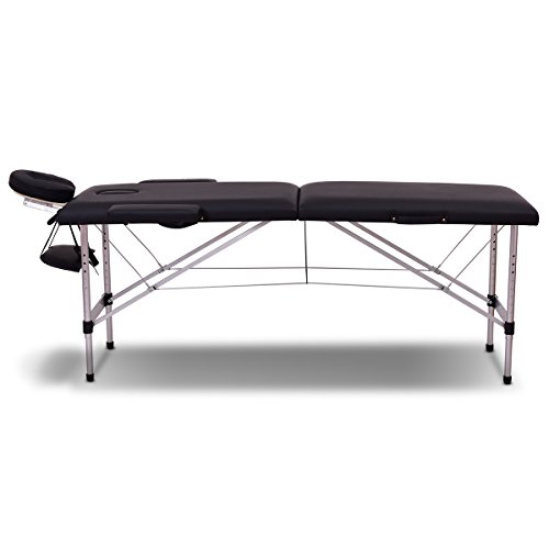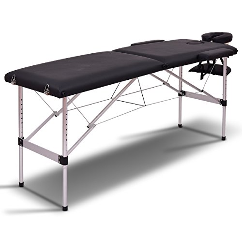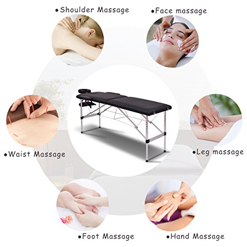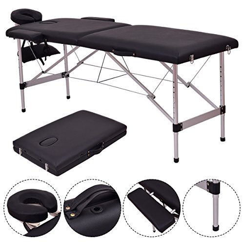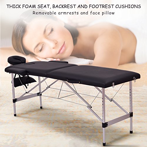 Giantex 84″ Massage Table Professional Portable Massage Bed, 2 Folding Lightweight Massage Bed, Aluminum Frame, Height Adjustable, Face Cradle & Side Armrests, Salon Spa Tattoo Bed with Carry Case