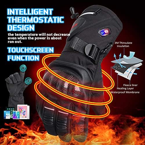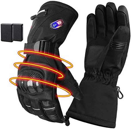 GMAYOO Heated Gloves for Men Women Electric Rechargeable Battery Gloves for Motoecycle Touchscreen Thermal Heat Gloves Waterproof Cycling Gloves Leather Gloves for Outdoor Sports