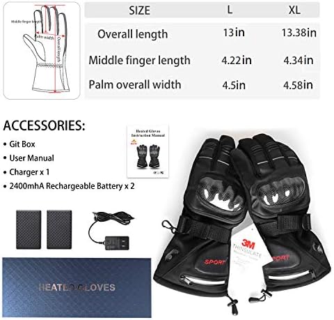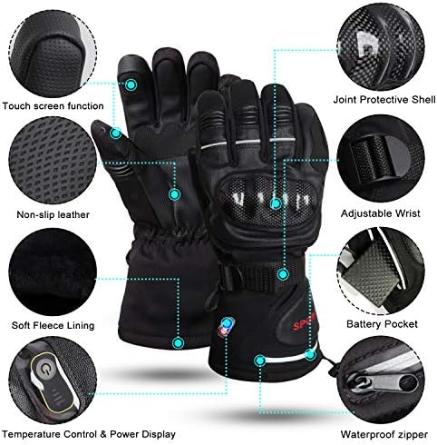 【Professionally Designed for Winter Outdoor Activities】The back of the hand has a carbon fiber joint protective shell, which can protect your joints better. Soft and breathable leather on palm, antiskid and wear-resistant. Built-in waterproof and windproof membrane to keep your hands dry. The inside is filled with 3M cotton insulation. It’s a comfortable and practical rechargeable battery glove great for cold weather.