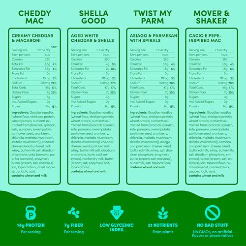 Goodles Mac & Cheese Assortment 4 Pack, 6oz – 14g Protein, 6g Fiber with Prebiotics, 21 Plant-Based Nutrients and Made w/REAL Cheese! | Clean Label Certified