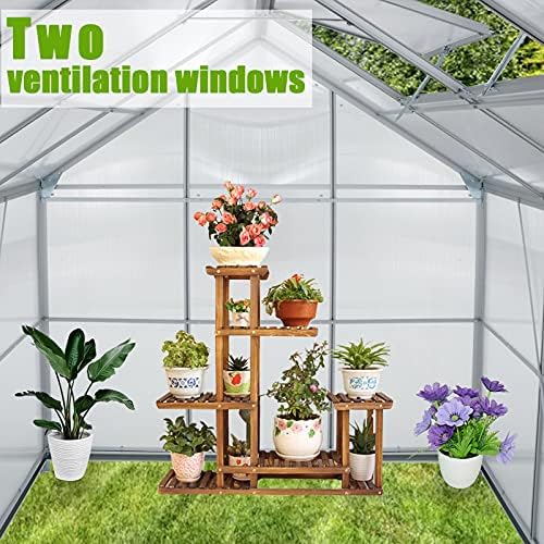 【STURDY AND DURABLE】Our large greenhouse is equipped with 4mm UV-resistant polycarbonate panels, can withstand temperatures from -20 ℃ to 70 ℃. The solid greenhouse is made of an aluminum frame and a strong steel base, which is light, rust-proof and stable.