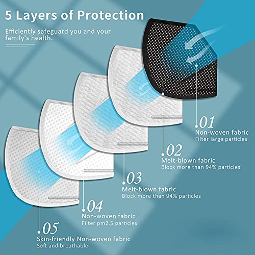 Multi-Layer Filtration: This mask is made of a 5-layer filtration system of non-woven breathable fibers and is utilized globally, offers more protection than a standard disposable 3-Ply mask. It has tested well filtration of particles 0.3 µm (microns) or larger, greatly keeping you from dust, PM 2.5, haze, smoke, automobile exhaust, etc.