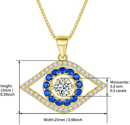 Handmade Lab Created Diamond Necklace,0.5 ct Moissanite Evil Eye Pendant Necklace for Women,925 Sterling Silver Necklaces,D Color ,VVS1 Clarity,Excellent Cut.Gifts for Women Mom/Wife/Sister.