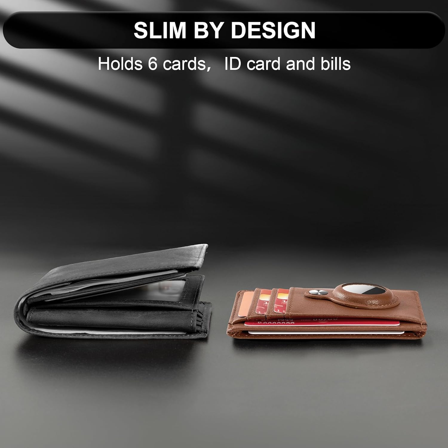 Minimalist Wallet for Men: This men’s wallet features a built-in case, tailor-made for the AirTag. It not only shields your AirTag from scratches and damage but also securely holds it in place within the wallet, making it convenient for easy access whenever needed. (Not including AirTag.)