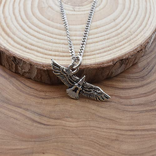 Hawk Charm Pendant in Silver Pewter on a 20 Inch Stainless Steel Curb Chain. Teen Boy Necklace. Gift for Men. Gifts for Boys. Gifts for Grandson. Bird Necklace.