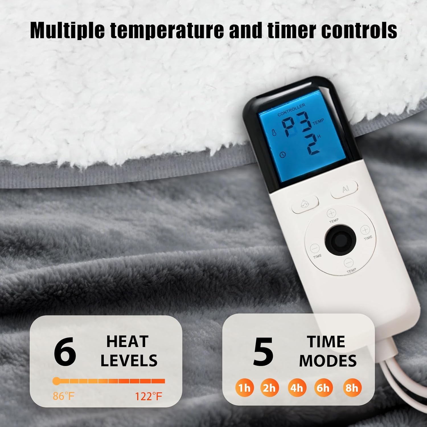 Heated Blanket Electric Throw, Portable Heated Wearable Shawl for Gifts, Super Cozy Soft Wearable Blanket with 6 Heating Levels & Timing Function, Auto Shut Off, Machine Wash (Grey)