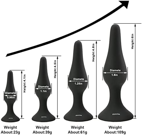 ※ 4 Plug Size – Small 4 x 1 inch, Medium 4.5 x 1.12 inch,Large 4.8 x 1.25inch, X-Large 6 x 1.5inch; Package includes 4pcs anal plug, Enema black 89ml and Lubricant 60g,Enema is used to treat certain types of infections; Lubricants can relax and relieve pain.