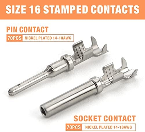 Stamped-Formed Contacts: The Deutsch Size 16 Stamped-Formed Contacts 1060-16-0122(Pin) & 1062-16-0122-PS(Socket) are designed for use with 18-14 ga wire within a size 16 cavity.